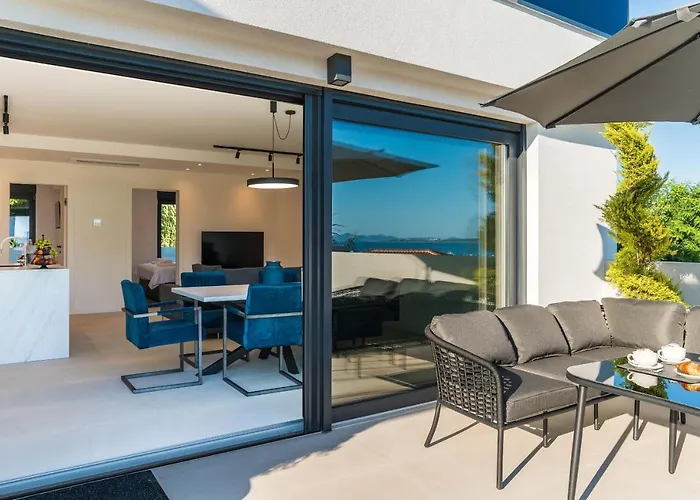The accommodation offers convenient self-catering facilities, including an equipped kitchen with an electric kettle, a refrigerator, and an oven. The nearest airport is Zadar, located 35 km from the 1-bedroom apartment. You can enjoy a cup of tea from a sunny patio with views of the sea.